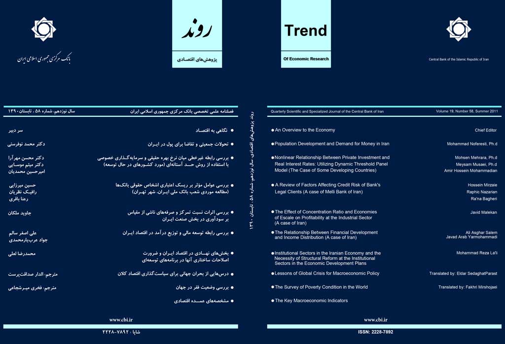 فصلنامه روند پژوهش های اقتصادی، سال نوزدهم ، شماره 58 ، تابستان 1390