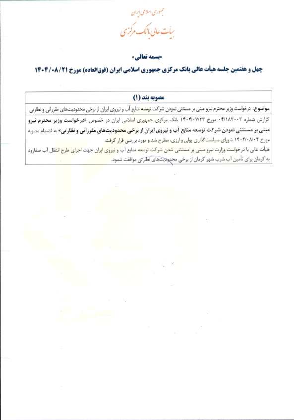 مصوبات جلسه هیأت عالی (فوق العاده) مورخ 1404/08/21 - 160 KB