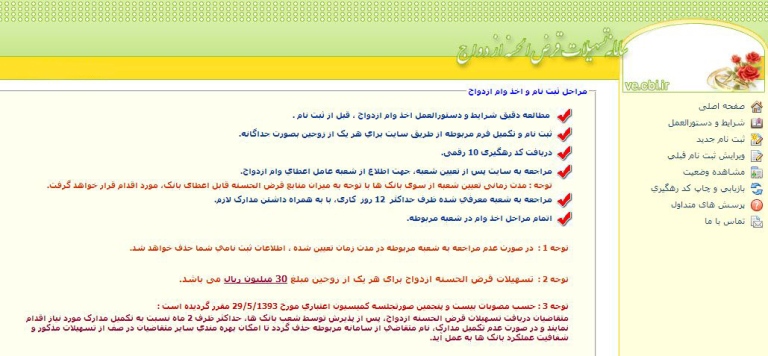 با توجه به عزم نظام بانکی کشور برای اعطاي تسهيلات قرضالحسنه و ارزان قيمت به جوانان درجهت نيل به اهداف عاليه خدمت رساني به آحاد مردم، بانک مرکزي از سال 1388 برای متمرکز کردن اعطاي تسهيلات قرض الحسنه ازدواج و امکان دسترسي کليه مزدوجين به تسهيلات موصوف، نسبت به راهاندازي و طراحي پايگاه اينترنتي ثبت نام تسهيلات قرض الحسنه ازدواج اقدام نمود.