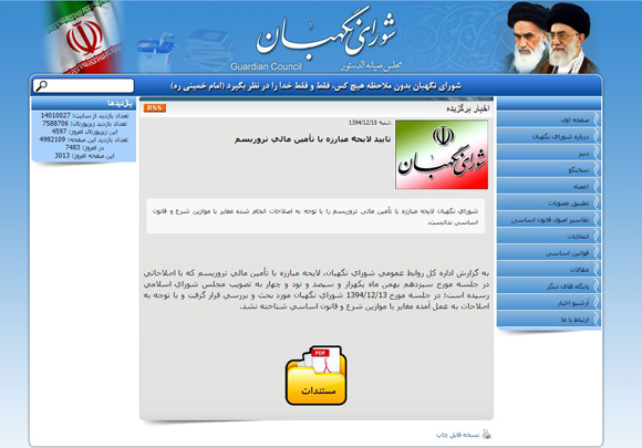 قانون مبارزه با تامين مالي تروريسم پس از تصویب در مجلس شورای اسلامی، در جلسه 13 اسفندماه شوراي نگهبان تایید شد.